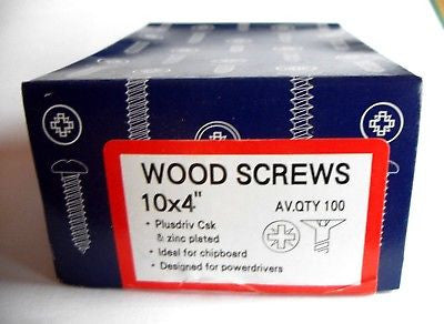 This listing is for a box of 10 x 4" hardened zinced csk pozi woodscrews.